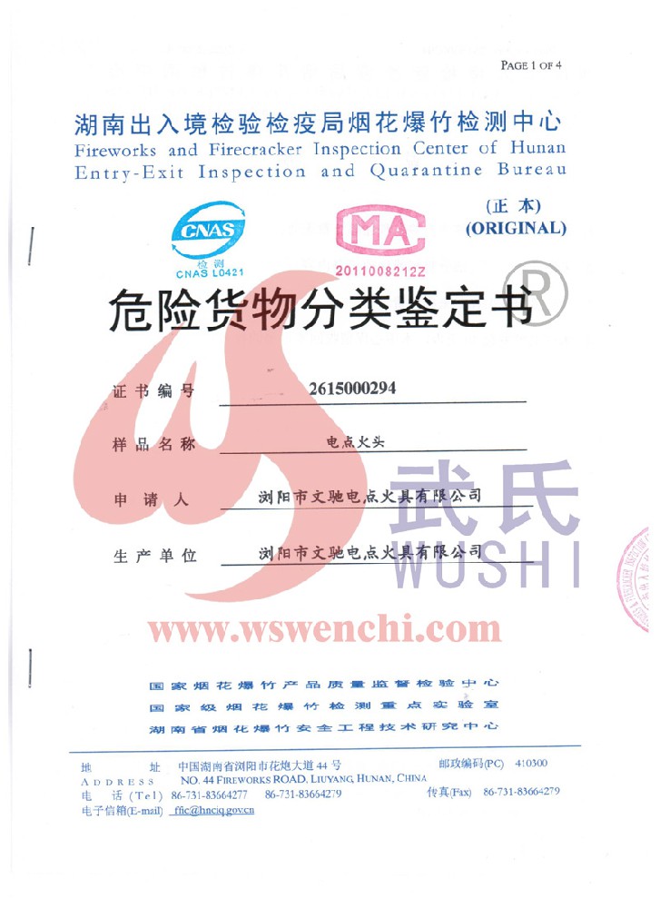瀏陽市文馳電點火具有限公司(原培文電子點火器材廠),創建于1998年,是一家專業從事研制銷售電子點火產品的民營科技企業,是我國第1枚煙花用電點火頭生產者,是《煙花爆竹電點火頭國標》牽頭起草單位。公司位于中國“煙花之鄉”湖南省瀏陽市,地理位置優越,交通便利?! ? 我公司研制的對象是用電能引燃火藥、做機械功等預定功能的一次性使用的元件或裝置,包括電點火頭(英文名ElectricMatch or Electric Igniter,中文俗稱“電火柴”或“電發火頭”)、電點火管和延期電點火管;我們估且在以后的產品技術欄中將我們研究的產品統稱為電點火具,將電點火器看成是用于提供和控制供給電點火元件點火的電能器材;我們研究的電點火橋路有橋絲式、無橋絲···